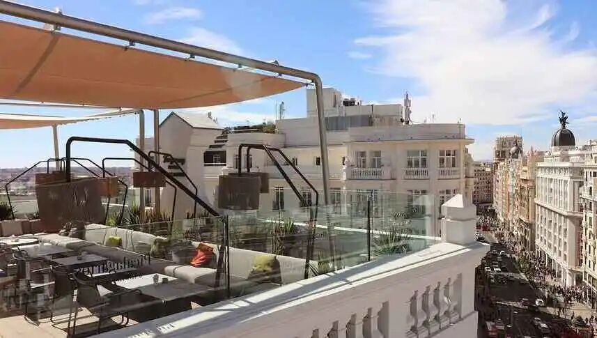 La Terraza del Santo Domingo是马德里市中心的另一个露台。对于那些寻求逃避,享受美味菜肴和鸡尾酒并欣赏马德里最佳景观的人来说,这是一个必不可少的地方。露台位于Hotel Santo Domingo七楼,毗邻Gran Vía。城市酒店的露台是在首都享受日落和户外活动的另一个最佳选择。这个地方可以确保马德里市中心的独特景观,除了丰富的鸡尾酒菜单外,还可以享用各种小吃。