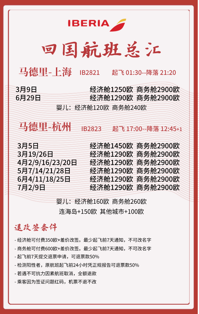 1 | 所有居住西班牙人员回国必须乘坐由西班牙直飞国内的航班。 |