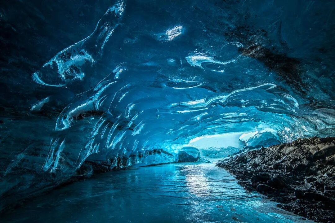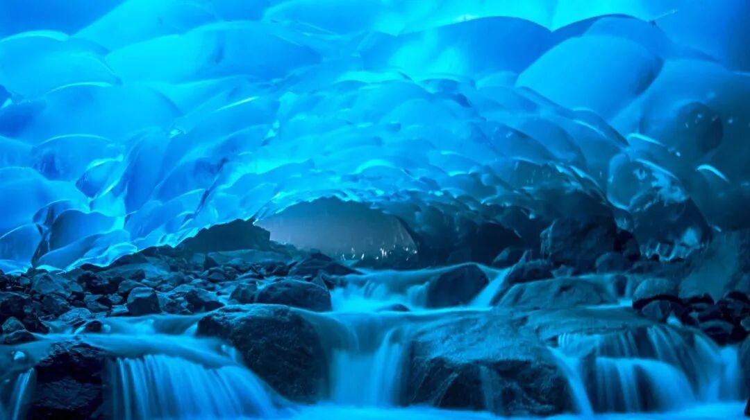冰洞是最壮观的自然现象之一。每年夏季,冰川处于消融状态,当冰面融水沿着冰川裂缝流入冰川内部,就会产生冰内消融。冰内消融的结果就是在冬季会孕育出许多独特的冰川岩溶现象,如冰漏斗、冰井、冰隧道和冰洞等。